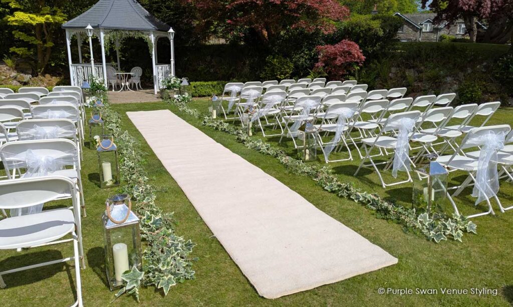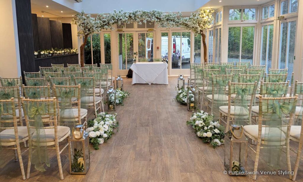 We cannot rate purple swan more highly enough. From first contact to last minute requests, Carla & Luisa have been fantastic! The props and decorations are beautiful and the room looked better than we could of ever imagined. When I walked down the aisle I couldn't believe how stunning the room looked with blossom canopy trees and lanterns. The tables for the evening reception looked spectacular! We honestly can't praise the purple swan team enough.