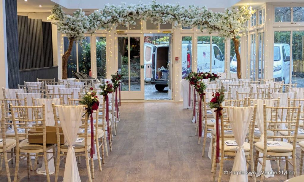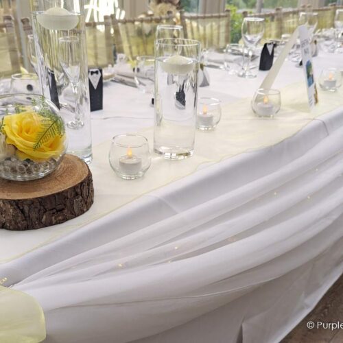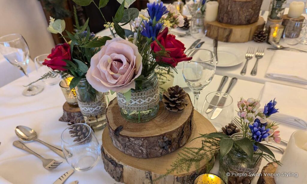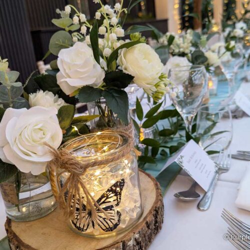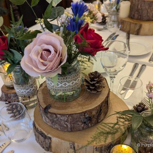 Having an intimate wedding of only 19 in total, I wanted the evening meal to be cosy and pretty, and Purple Swan did just that.I was truly blown away when I walked through the door. After telling them what I like with log slices and some colours I left them to do their magic and I am so glad I trusted them to create such a beautiful room. From the lights around the room, to how the table was dressed and the beautiful chairs.All the guests couldn’t believe it was the same room! Everyone loved it!Very professional, fantastically priced and so good at what they do. I will certainly be recommending to friends and family.Thank you so much 😊
