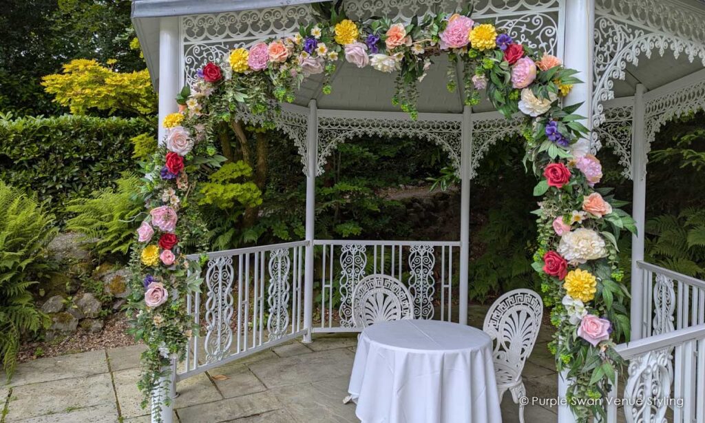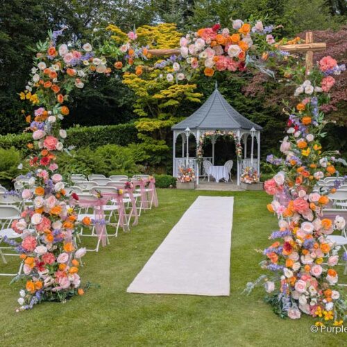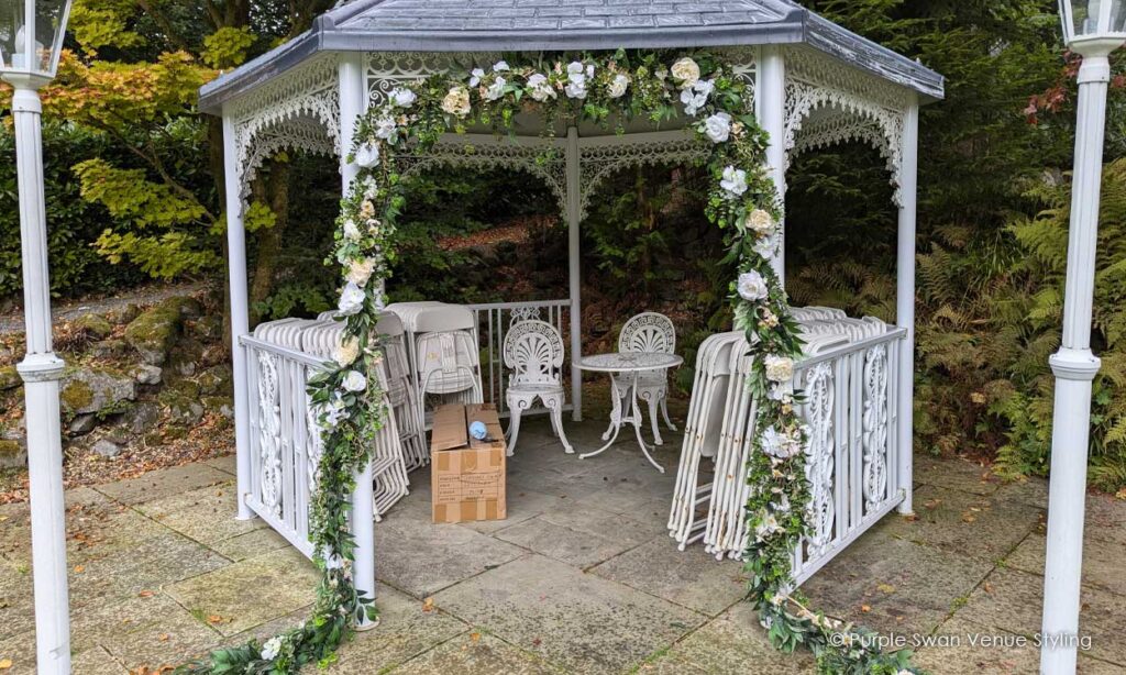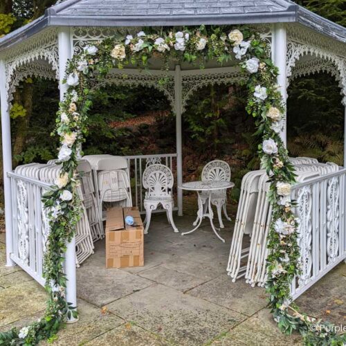 Thank you to Purple Swan for styling our wedding. The place looked absolutely beautiful and really fitted with the autumnal look we wanted, and the moon gate was gorgeous!Really professional service and loved that we could go and look around the warehouse at what we wanted!