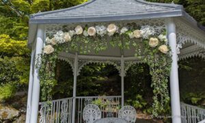 White-Wedding-Deocrations-at-Broadoaks-4-Outdoor-Ceremony-gazebo-garland-flowers