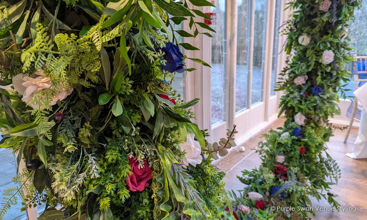 Winter-Wedding-at-Broadoaks—Moongate-Arch,-Green,-Navy-Blue-and-Red-2