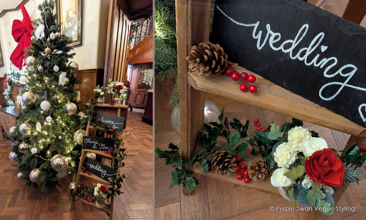Winter-Wedding-Entrance-Ladder-Sign-at-Broadoaks-Country-House