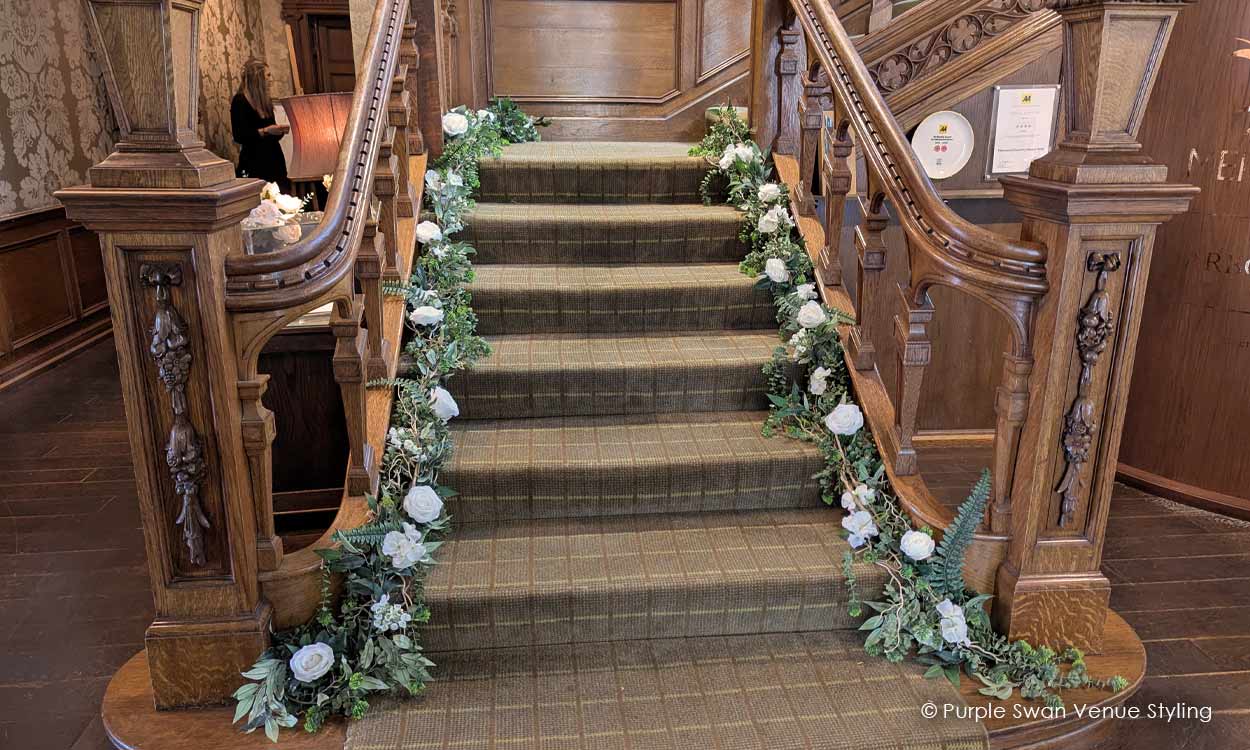 01-Merewood-Wedding-Staricase-Flower-Garlands